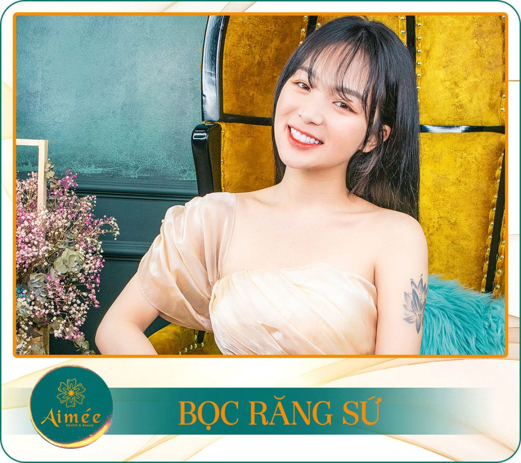 Bọc răng sứ là phương pháp phục hình răng giúp khắc phục những khuyết điểm như: răng ố vàng, răng xỉn màu, răng mọc lộn xộn,… Aimée tự tin từng bước khẳng định tạo nên vẻ đẹp nụ cười cho khách hàng.