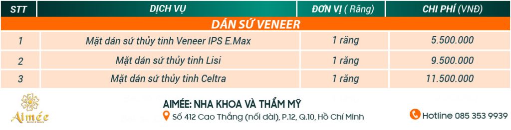 BẢNG GIÁ DỊCH VỤ DÁN SỨ